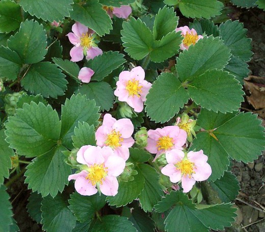 Цветки у земляники белые, иногда с розовым оттенком, от 2 до 5 см в диаметре. В земляники садовой первые цветки в соцветии крупные, с 16-20 чашелистиками, 8-16 лепестками, С-40 тычинками и 300-400 пестиками. Подавляющее большинство сортов имеет обоеполые цветки. У незначительной части сортов (Комсомолка, Поздняя с Леопольдсгаля, Мице Шиндлер) пыльников в цветках нет или они недоразвиты. Такие цветки называют женскими, безтичинковимы или несовершенными. Если в насаждении нет сортов с обоеполыми цветками, то безтичинкови сорта плодов не завязывают. У некоторых сортов с обоеполыми, цветками (Коралловая 100, Ясна, Кульвер) в первых цветках пыльники недоразвиты, а в следующих — нормальные.