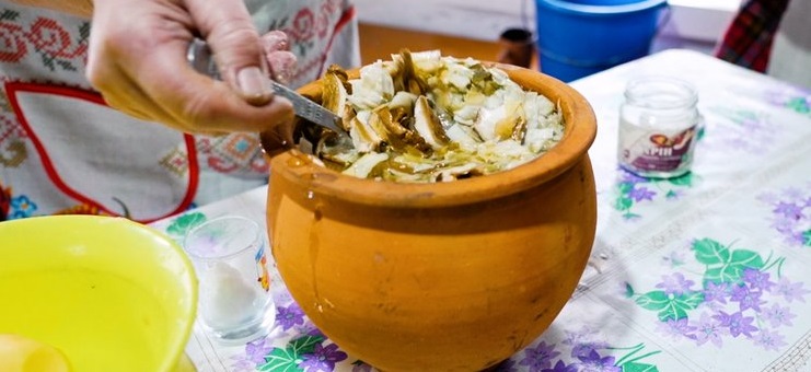 По словам Натальи Пилипчук, раньше шинкованную капусту мариновали по три-пять дней в специальных деревянных кадках, а сейчас для этого используют обычные горшки.