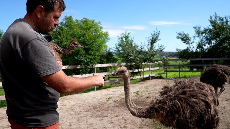 «Я бы никогда не подумал, что буду жить в деревне, я буду заниматься садом и что у меня будут животные. Мои родственники, по -видимому, все еще шокированы тем, что у нас нет этих страусов, но и лошадь — разные животные. Когда мы переехали сюда, моя жена впервые увидела корову», -, — когда мы переехали сюда, моя жена увидела корову ».Идея покупки страусов у пары давно созрела. Путешествуя на Украине и за рубежом, Сергей и его жена часто обращали внимание на нетипичные фермы. Теперь во дворе есть два взрослых страуса и четыре страуса. Они нуждаются в уходе ежедневно: утром им дают овощи, зерновые и измельченную свежую траву. Сергей обрезает ее на режущей машине. Например, у птиц уже есть свои привычки, они любят танцевать, особенно утром.