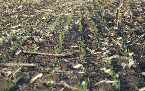 Например, на кукурузе более эффективно применение почвенного гербицида Примекстра Голд ТС по лестнице культуры, особенно если его совместить с послевсходовыми гербицидами, например Базисом или Мастером. В таком случае можно уменьшить норму внесения каждого препарата, получить максимальную их эффективность против вегетирующих сорняков и иметь длительный период защитного действия почвенного гербицида. Чем грубее растительные остатки, тем большее количество препарата попадает в почву.