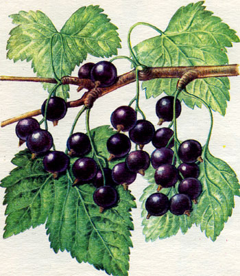 Смородина. Плодоношения у нее бывает на таких типах плодовых образований: вегетативных, смешанных и плодовых веточках и кольчатках.