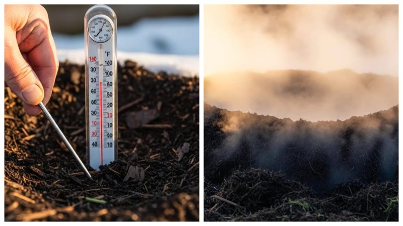 Горячее компостирование – это процесс, при котором температура внутри кучи повышается до +50…+65 °С. Так компост не боится морозов, а органика быстро превращается в темный, рыхлый перегной.