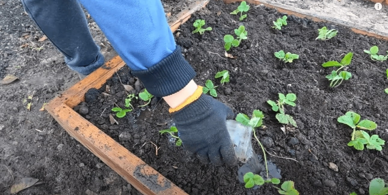 Еще один очень важный нюанс — это приготовление почвы. Перед посадкой клубники вам нужно добавить слегка гниющий коровье и 50 г суперфосфата на 1 квадратный метр слоев. Это предпосылка для разработки корневой системы. Расстояние между кустами должно быть от 20 см. Мы больше ничего не добавляем в отверстие. Например, стимулятор радио -формы. Для этого разбавьте 25 г приготовления в 10 литрах воды. Это ускорит укоренение растений, и они хорошо пройдут зимой.